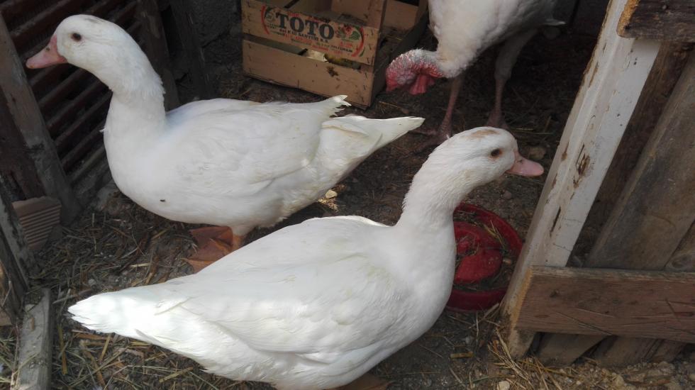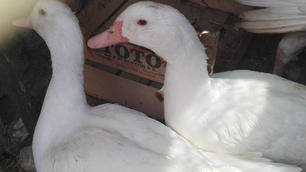 Salve, ho iniziato ad Aprile una nuova attività, quella di allevare animali, pratica che anni fa era dominante tra i nostri nonni bisnonni e che piano piano sta tornando in voga anche nei nostri giorni. Adesso essendo il primo anno ho già messo di tutto galline rosse, bianche, nere, nane, faraone,tacchini, conigli, oche, germani, anatre. Ecco proprio sulle anatre vorrei che mi toglieste dei dubbi osservando le foto di due esemplari bianchi femmina di un po più di 4 mesi. Ho letto che le moulard sono ibridi ottime per la macellazione, sterili, non so se a lungo andare qualche uovo essendo femmine lo depongono, mentre le pechino producono uova ma non hanno molta attitudine alla cova come per esempio le mute o anche i germani. Se mi dite che sono Moulard il loro destino sarà segnato al più presto, invece se sono Pechino le lascio per le uova future. Grazie in anticipo :)