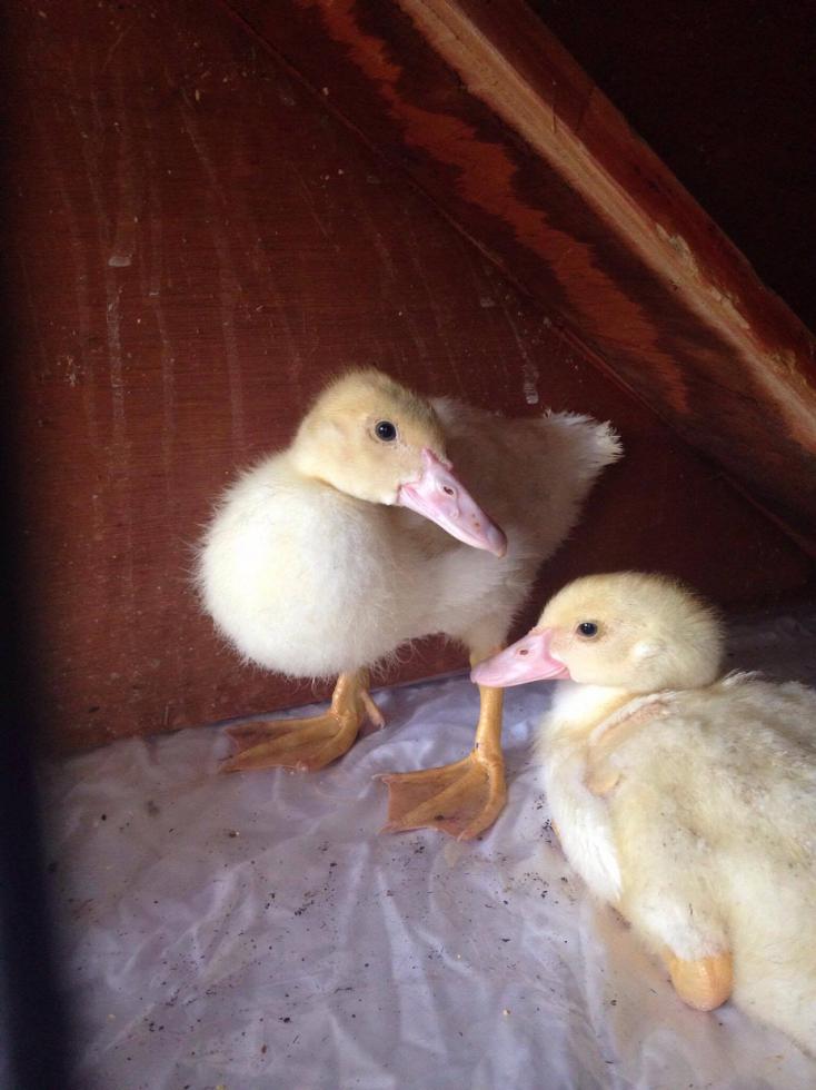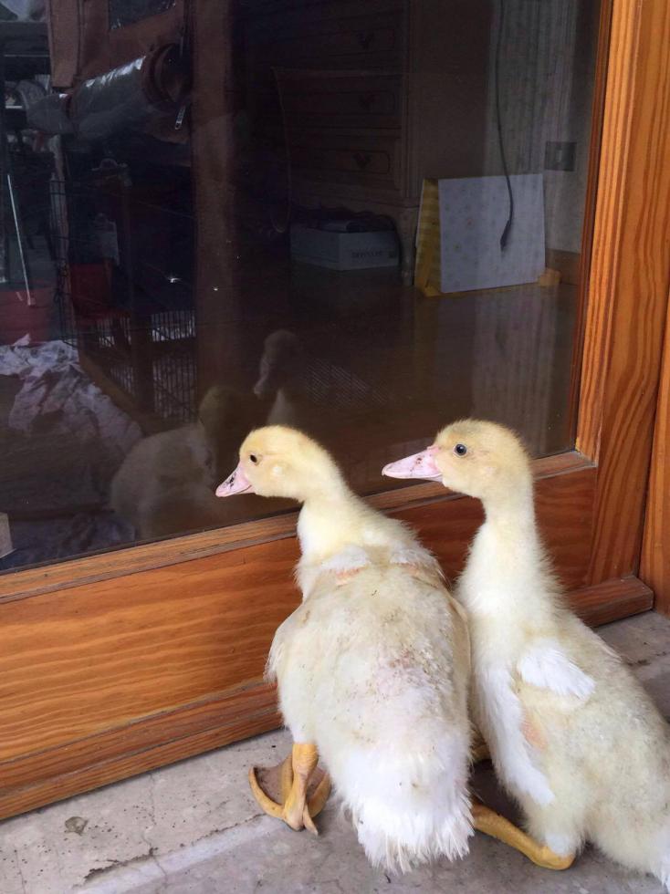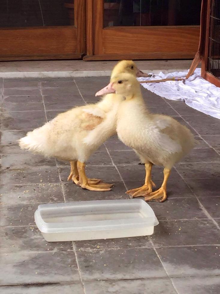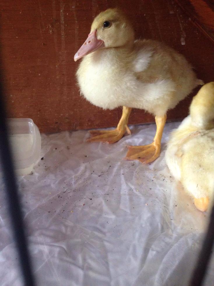 se ascoltate con attenzione tralasciando il pigolio dell anatroccolo che ha 23 giorni, nel momento in cui l anatra e dietro al cespuglio e io nn la inquadro emette il suo verso che fa sempre quando la separo dall anatroccolino è un "tee tee" non so come descriverlo. e poi quando si incontrano fa il versetto di una ranocchia.