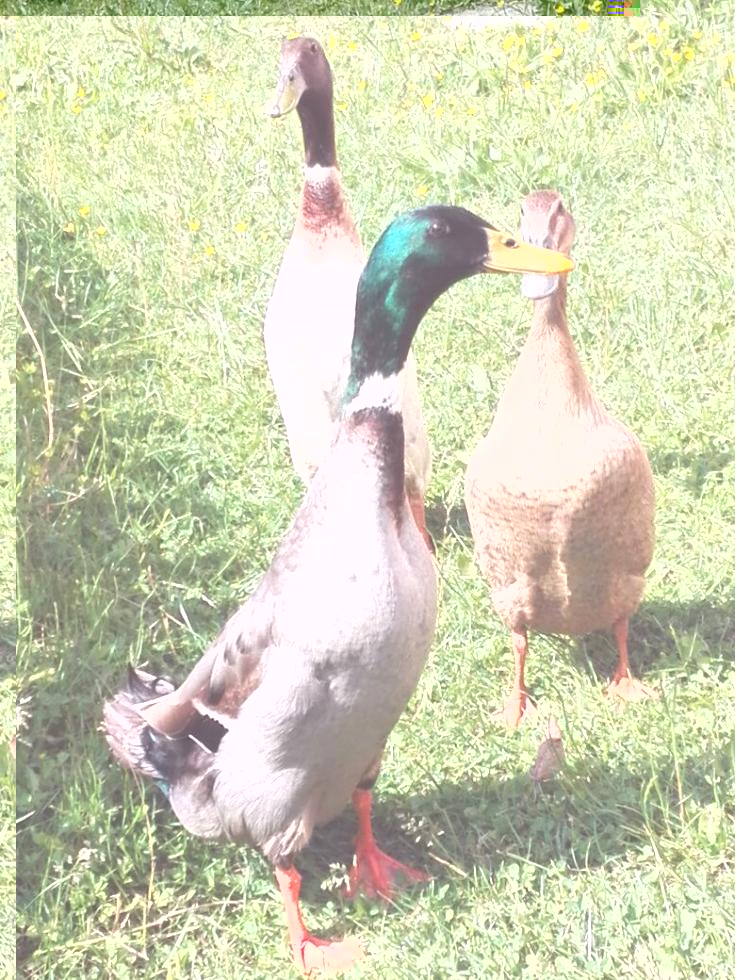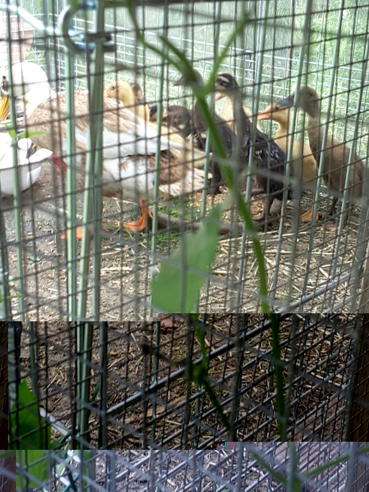Ciao a tutti! Vi allego le foto dei piccoli anatroccoli dopo 15 giorni di vita e un'immagine degli adulti. Mamma anatra ha covato le uova anche dell'altra femmina. Cosa faccio: li libero in giardino o rischio ancora che qualche gatto me li uccida? (Sembrano grandi come piccioni).