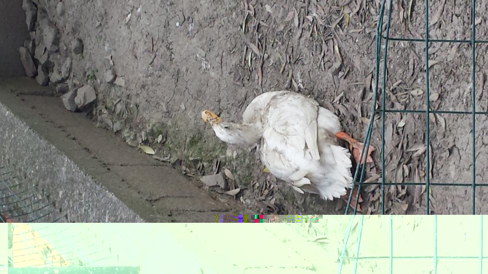 Oggi pomeriggio, come di consueto, sono andato dalle mie anatre a portarle il loro pasto quotidiano, quando ho notato una delle due che era a terra in una posizione per niente rassicurante.