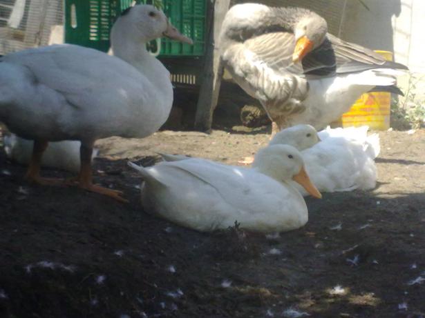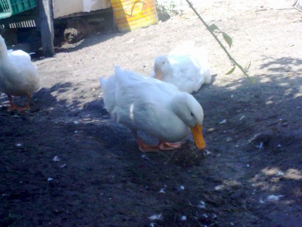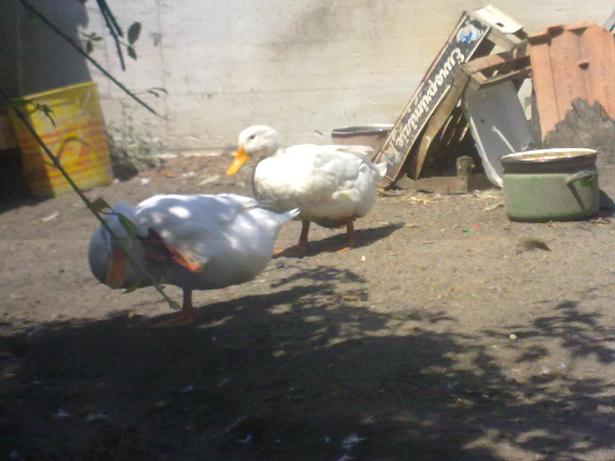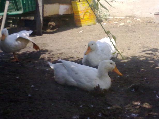 Hanno circa tre mesi.Le ho tirate su a mangime primo periodo ed erba fresca, in gabbia fino al mese di età e successivamente in recinto fino ai due mesi circa(per evitare che le oche le attaccassero visto che erano piccole),poi libere al pascolo (mangiano di tutto,erba,insetti, in particolare sono ghiotte di vespe e calabroni da quanto vedo), alla sera gli dò granaglie, un pò di pane bagnato e un pò di insalata.