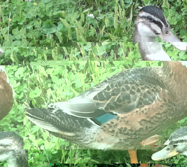 Buon giorno, tengo delle curiosità sulla cucciolata di febbraio della mia anatra germanata o veneta (quello che sia). Gli anatroccoli oramai hanno messo gia un folto piumaggio ma ciò che ho notato è che sono tutte diverse tra di loro e nessuno ha preso la colorazione dei genitori. C'è un maschio particolare che è il più piccolo di tutti ha un piumaggio marrone scuro e assomiglia ad un germano reale vero e proprio invece gli altri sono più grandicelli e hanno un piumaggio chiaro. Sto notando inoltre che un maschio ha gia il riccio e sta mettendo gia la livrea nuziale (?). Ecco le foto per farvi capire meglio, ricordo che tutte sono nate nello stesso giorno e hanno gli stessi genitori.