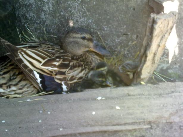 Oggi sono andato a farli mangiare e ho trovato 3 batuffoli ai lati della femmina,secondo i miei calcoli sarebbero dovuti nascere lunedì prossimo,ma meglio così,non sono riuscito a contarli ma sembrano essere 8-9 circa.Quando sono entrato per controllare e fare le foto la femmina ha iniziato a soffiare e tutto d'un tratto mi è volata sulla spalla pizzicandomi la mano molto forte  . Questo conferma come i germani restino pur sempre selvatici,non come la mia anatra muta che si facenva anche accarezzare quando aveva i piccoli sotto. ECCOVI LE FOTO,anche se dato l'attacco le ho dovute fare a distanza  :