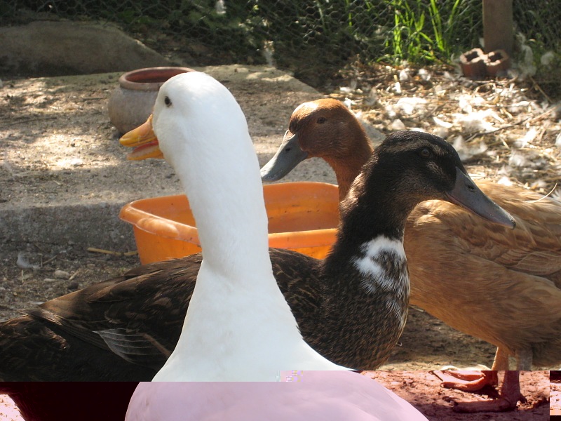 A questo punto non so che dire, sarà giusta l’ipotesi che me le abbiano rubate. Me lo ha detto anche il saggio contadino vicino di casa che sono andata a trovare oggi. Lui ha escluso la volpe e insomma da diverse fonti sono state fatte le valutazioni che molti di voi hanno fatto. Amerigo, quando ho letto il tuo messaggio mi sono molto inquietata, proprio non avevo pensato alle persone a cui mi rivolgo in mia assenza. Voglio dire è gente che ha le chiavi di casa da anni, è gente fidata, a volte ci assentiamo per circa un mese, come si può diffidare del mondo intero? Questo concetto lo rifiuto perché io sono una persona onesta e voglio credere anzi, sono certa, che di persone come me ce ne sono tante. Perché farmi una tale cattiveria considerata la dedizione che ho per i miei animali e di cui sono perfettamente a conoscenza? Chissà cosa è accaduto ai miei piccini, non mi do’ pace. Ora lascio passare qualche giorno, dopodiché se ancora non si trova una spiegazione, penso che andrò a denunciare il furto. Intanto domani la signora in questione verrà a casa per l’aiuto domestico e mio marito le chiederà un po’ di cose. Di certo qualche balla l’ha detta, questo lo so, ma per me rientra nei limiti della persona. Le foto delle tre anatre, il maschio Bailey ha 8 anni e le due femmine (la nera è figlia di entrambi) ne hanno 5 e 2. Il nuovo recinto in questa foto non c'è ed è stato realizzato dopo la tettoia del trattore. Allegato:
