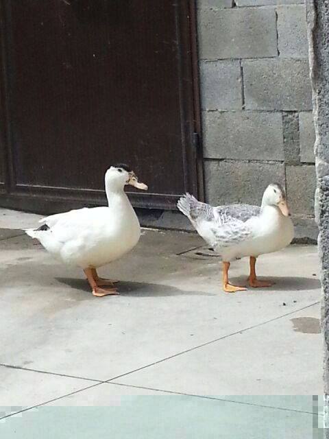 scusate potete aiutarmi a capire il sesso delle mie anatre? Allora la bianca innanzitutto ha una voce molto forte e fa il classico starnazzo delle anatre "qua qua"...l'altra invece (mi ha detto l'allevatrice essere umuta) ha la voce molto fine e non ha mai starnazzato...come vedete nessuna delle due sulla coda ha il famoso ricciolo e una ha una postura più orizzontale (la grigia) mentre la bianca è più eretta...per il carattere la grigia in effetti è un pò prepotente sull'altra infatti alcune volte le mozzica e le corre dietro nonostante sono cresciute insieme...inoltre quella bianca ha una "mascherina" attorno al becco molto rossa che invece l'altra non ha...vi allego le foto e spero che qualcuno possa aiutarmi...la bianca ha un anno invece l'altra 10 mesi e niente uova ancora!nell'ultima foto la grigia era un pò più piccola