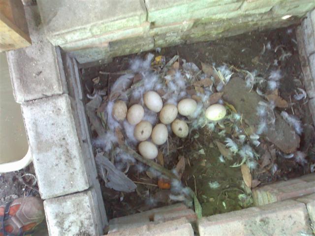 Salve a tutti,il 24 giugno del 2009 ho acquistato due pulcini di anatra muta,che fino a poco tempo fa pensavo fossero due Moulard,quindi ibridi infecondi,inquanto fino a gennaio non avevano ancora sviluppato le carnule attorno agli occhi,invece ieri mattina 15 marzo 2010,hanno fatto 10 uova che hanno cominciato subito a covare dandosi il cambio...Sono sempre stati inseparabili fin dal primo giorno che li ho portati a casa,hanno sempre vissuto in simbiosi molto uniti,solo che,crescerne una coppia è un discorso,crescere 10 piccoli e 2 adulti è un'altro...Cosa posso fare?Se gli tolgo le uova,ci sono pericoli per i due genitori???Se riuscissi a donarli in giro li farei anche nascere e svezzare ma così alla cieca non me la sento di farli crescere se poi non posso stargli dietro e curarli...Penso di aspettare ancora qualche giorno prima di torglieli,restando in attesa di qualche consiglio da esperti in materia vi posto alcune foto dei loro sviluppi
