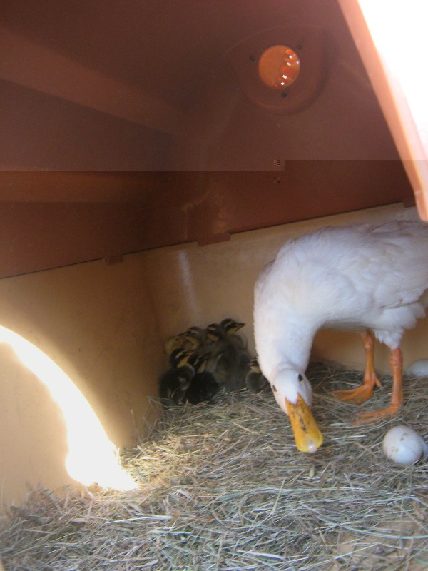 ok, per un'emergenza si possono mettere anche le uova d'anatra sotto la gallina, però avendo provato ora tutte e due le opzioni, posso dire che mamma anatra per gli anatroccoli è tutto un altro mondo  . allego foto, la prima dei piccoli appena nati, le altre due di oggi a 10 giorni di vita