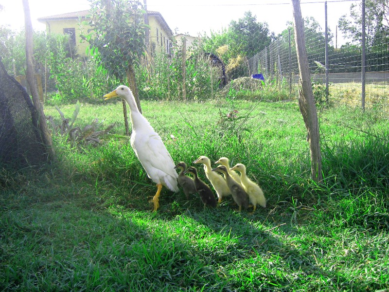 cinic ha scritto: Cita: Io i tre paperi di cignoide li ho lasciati con la madre gallina, e lei li accudisce tranquillamente. L'unico problema è che i paperi cresceranno velocemente, per cui tra qualche settimana non ci sarà più spazio per darmire tutti e tre insieme sotto le sue ali i miei 4 son stati covati dalla madre però ho dovuto toglierglieli  su 10 uova che aveva inizialmente,2 le ha fatte uscire dal nido,1 l'ha crepata,1 è letteralmente sparita,un pulcino l'ha schiacciato lei con guscio e tutto.così mi son stufata e li ho messi sotto alla lampada ad infrarossi.per ora crescono bene,hanno già anche imparato a nuotare  Forse era una gallina un pò sbadata La mia, nonostante fosse alla prima cova, si è comportata magnificamente. E continua a farlo anche adesso