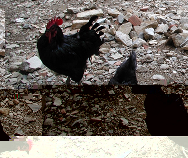 Ecco altre foto. Tenete presente che il Gallo Bersagliere sta uscendo da una muta terrificante, la sua coda è bellissima con le penne alte, lunghe e ricurve. Bersagliere ha anche un bargiglio più corto, esito di un duello giovanile.