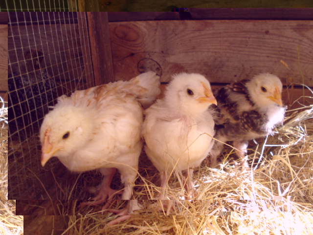 Pulcini di due giorni e tre intrusi : Faverolles selezione tedesca