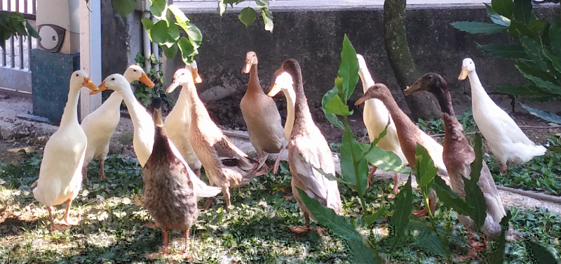 Cedo anche anatre corritrici indiane, ho disponibili ancora un maschio e una femmina colorate, un maschio e tre femmine bianche, e tre pulcinotti bianchi da sessare.