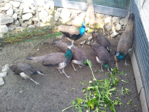 Ecco una foto di gruppo ed una del pavone adulto...ognuno costa 80 euro e prendendo la coppia è 150 !!