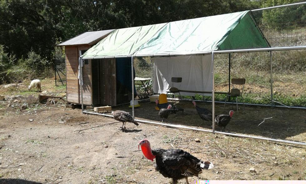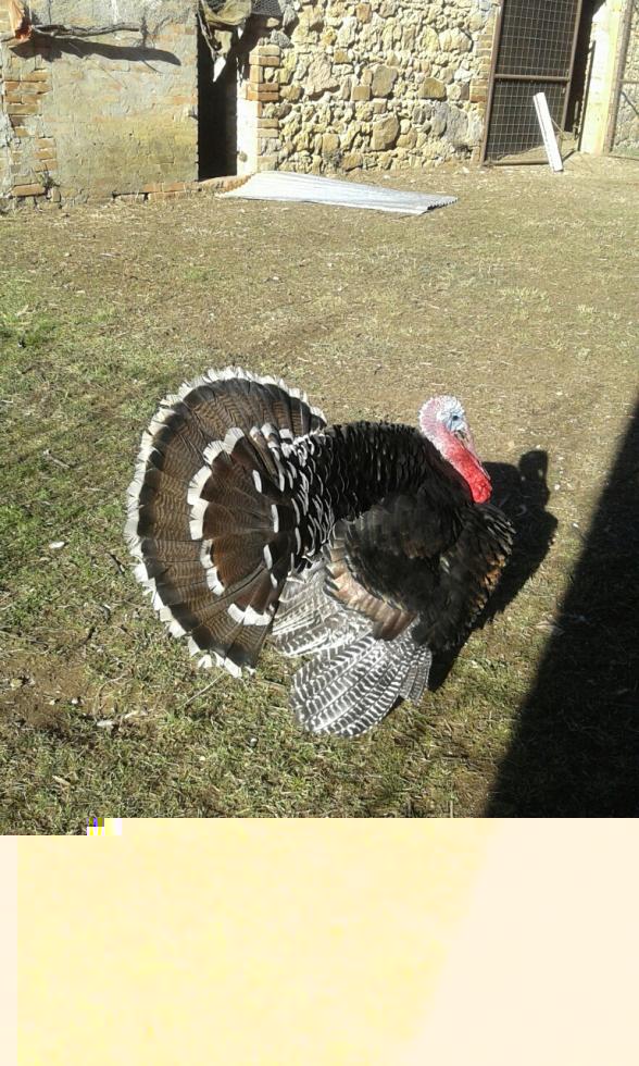 Cedo, per esubero, tacchini bronzati di razza leggera di tutte le età: sono ottimi per tenere pulito il giardino da ogni sorta di animale molesto (vipere, ragni, etc...), sono docili, e le femmine sono delle chiocce incredibili. Morirebbero piuttosto che rinunciare alla cova. Inoltre sono delle mamme incredibili con i piccini. Sono tutti nati da cova naturale, nella mia proprietà, e ho fatto in modo che non fossero figli di consanguinei. Alimentati solo con mangimi NO OGM e pascolo. Prezzo realmente modico. Nelle foto il padre, la madre in cova, i piccoli di diverse età.