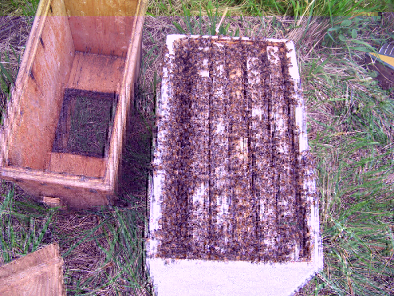 Avevo comprato il giorno prima un portasciami in polistirolo nuovo di pacca, da 6 telaini, usato subito!!! Ormai sono difatto, non ne posso piu' di raccattare sciami.