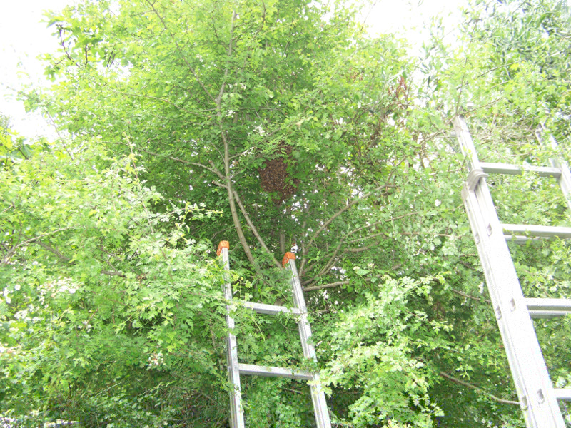 Torno a casa per prendere l'altro catturato la mattina e mentre passo sotto ai rami del solito pero, eccoti che noto lo sciamone misterioso scomparso....si era spostato dalla vite al pero, da 1,5 metri di altezza a circa 4 metri!!!