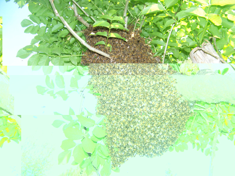 Il 09/05/2012 facendo il solito giro vedo uno sciame. E voi direte: che c'è di strano? Li vedi tutti i giorni!!! Infatti. Saranno passati 10 minuti da quando mi sono vestito e risceso (ancora non capisco perchè non mi vesto, preparo tutto e vado direttamente giu'...mah!) che lo sciame non c'era piu', c'erano solo una decina di api che giravano intorno al ramo dove si era posato. Chissà dove è andato, vabbè, ho pensato, mi hanno fatto lo scherzo!!!! Ho subito pensato al miraggio, ormai vedo sciami anche nell'insalata di riso!!!!