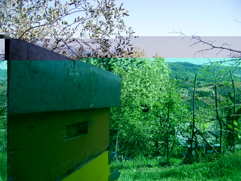 Giusto per non perdere l'abitudine. Le mie apotte hanno deciso di sciamare....strano va la'!!!! Sono andato a controllare l'arnia dalla quale sono sciamate (quella in foto 1), questa è l'arnia nella quale ho visto due regine sullo stesso telaino ( api-f53/2-regine-t38832.html), una ancora da fecondare, quindi mi aspettavo che prima o poi sciamassero. Ho visto che in quest'arnia c'è una bella regina feconda, ho chiuso ed ho deciso di adottare una tattica diversa a questo giro. Ho preso lo sciame nel portasciame, ho individuato la regina sciamata, l'ho uccisa  . Ho posizionato il portasciame vicino all'arnia incriminata (non davati, ma a circa 3-4 metri di lato). Poi ho cosparso di farine tutte le api rimaste dello sciame, ed ho aspettato davanti a quella che credevo fosse l'arnia di partenza. In capo a un'ora ho cominciato a vedere api infarinate che entravano nell'arnia. Recupero con riunione semi-istantanea riuscito. Io quest'anno volevo recuperarne il meno possibile....per ora il mio meno possibile è sette! Allego foto. Saluti