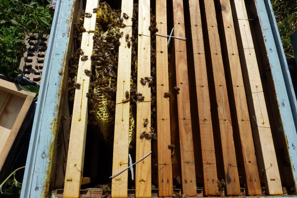 Vedo solo cera e un pò di miele ma non vedo le api che dovrebbero, in questo periodo, coprire abbondantemente i favi per poter affrontare l' inverno. Ninno