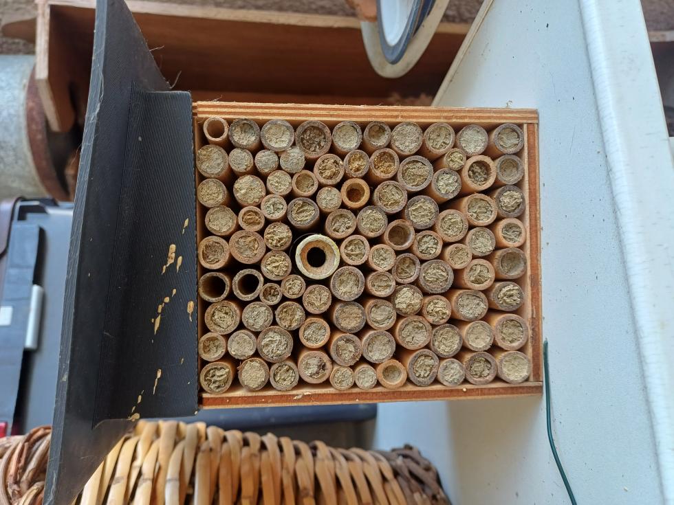 Salve a tutti, mi chiamo Adele e sono una studentessa al primo anno di veterinaria. Speravo mi poteste dare una mano. Un anno e mezzo fa ho acquistato da 3bee una piccola arnia per osmie. Non so se avete presente 3bee, ma ti inviano l'arnia vuota e un tubicino con dentro le larve. Ho istallato il tutto nel mio giardino, in primavera le api sono uscite e per tutta l'estate hanno riempito le celle che poi hanno tappato in autunno. Quest'estate mi aspettavo di vederle uscire di nuovo, ma così in è stato, ho aspettato un po' ma alla fine ho deciso di svuotare una cella e questo è quello che ho trovato (spero le immagini si vedano). Non capisco sinceramente cosa sia successo e speravo che qualcuno mi potesse dare qualche spiegazione. Tutte le larve bianche che vedete in foto erano completamente immobili, l'unica cosa che si muoveva era quell'insettino marrone (c'è una foto che riprende solo lui). Credo sia evidente, ma non sono assolutamente un'esperta nel campo, però l'idea mi piaceva vedere come è finita. Grazie in anticipo per l'aiuto