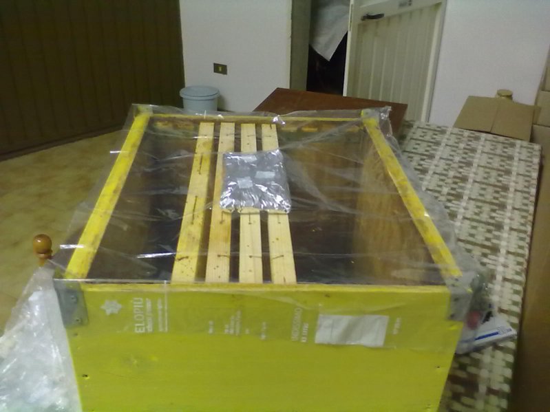 Mah... Io ho provato a mettere un pezzo di plastica all'interno del coprifavo sul quale ci avevo messo il candito... le api se lo sono portato fino in fondo al nido. Secondo me è un troiaio, anche perchè se tu usassi un telo da serra sarebbe davvero come vedere attraverso la nebbia. Totalmente inutile. E poi mi sono innamorato delle costruzioni di flightofthebumblebee.