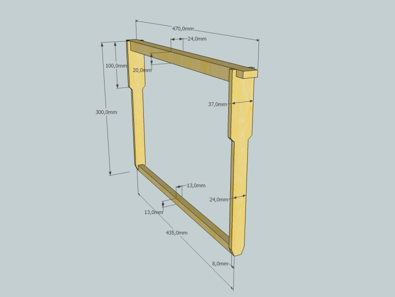 Queste sono le dimensioni del telaino Hoffmann. Il 37 è teorico, in pratica si fa 36 o 35 per non avere problemi con la propoli.