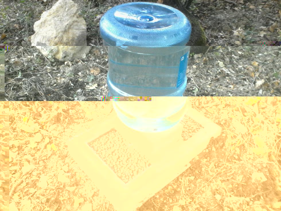 la base è fatta di cemento, colato in uno stampo in polistirolo, cosi è pesante e non cade perchè il bombolone dall'acqua sono una ventina di kg. Nelle vaschette dove va l'acqua attraverso due tubicini ho messo argilla espansa, che galleggia così le api non affogano ma ci si posano sopra. Fra l'altro mi pare di aver letto qualcosa di positivo a proposito dell'argilla sulla salute delle api. Grazie per i complimenti