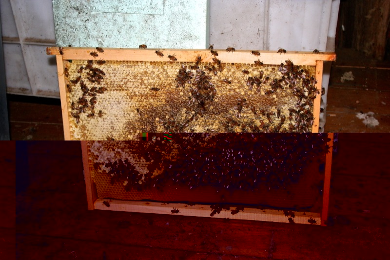 Il T1 sostituito, visto il periodo, l'ho invertito col T2 (carico di scorte e assente di covata) perché? non lo so. (In che mani sono finite?) In premio hanno ricevuto il solito Kg di zucchero sciroppato. (Prima ho lavato il nutritore perché forse i residui della spremuta di limone hanno provocato un principio di muffa) Per la visita ho usato l'affumicatore (costa) con combustione di aghi di pino silvestre…ha funzionato.