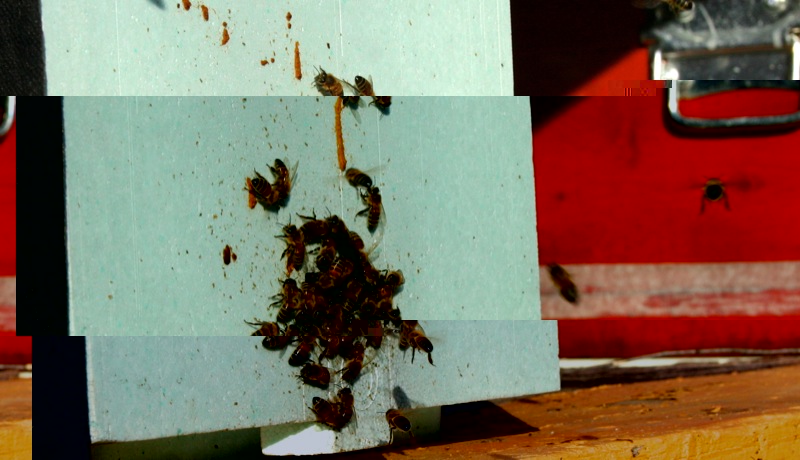 Il nucleo A1, con regina probabilmente non feconda, mi é sembrato apposto, le api uscivano e partivano immediatamente e intorno alla porticina stazionavano 5/10 api.
