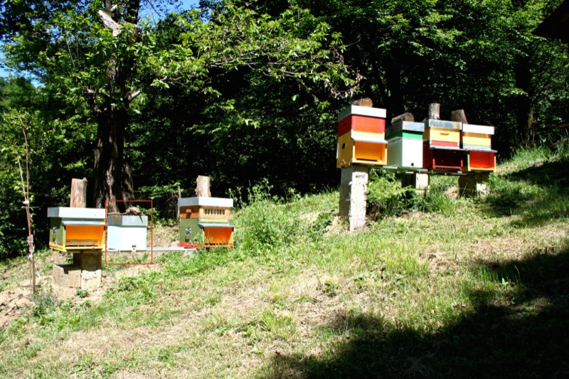 Eccomi qua, primo fallimento della stagione……Acacia 0  …nidi intasati e una sola famiglia che, salita a melario, ha costruito i fogli cerei ma dopo li ha solo sporcati per poi ripulirli. Probabilmente non avere telai costruiti ha inciso, ora tento di farne costruire il più possibile mettendoli nel nido e togliendoli per tempo, sono arrivato ad averne per 2 melari…in attesa di Tiglio e Castagno, se serve li alternerò con fogli da costruire. Le famiglie sono forti, una sola sciamatura e ho riunito il nucleo in polistirolo perché era rimasto orfano, al momento mi trovo con 5 regine verdi e una rossa, tutte depongono alacremente e le api importano molto polline. Spero che con la prossima fioritura siano oneste e mi diano la mia parte di bottino, sono curioso di vedere come si comporteranno anche se rischio di rimanere a secco.