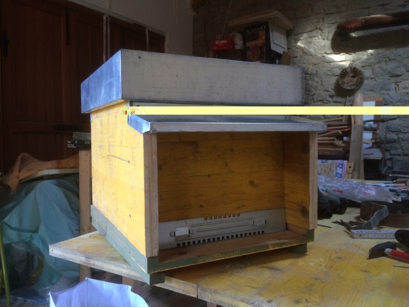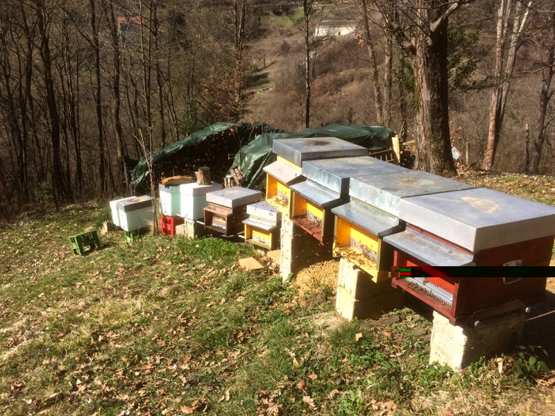 Di seguito foto dell'apiario venerdì. (le casse verdi le ho lasciate davanti al nucleo che sorreggevano per aiutare l'orientamento)