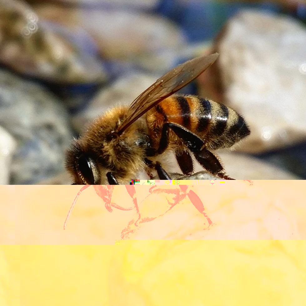 questa in foto è una delle mie api che beve da un abbeveratoio realizzato con un portavasi e dei sassi...