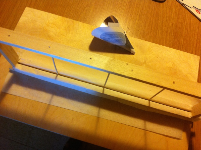 Ho costruito uno "stampo" provvisorio usando due stecche inferiori dei telaini da nido, rivestiti poi di carta da forno: