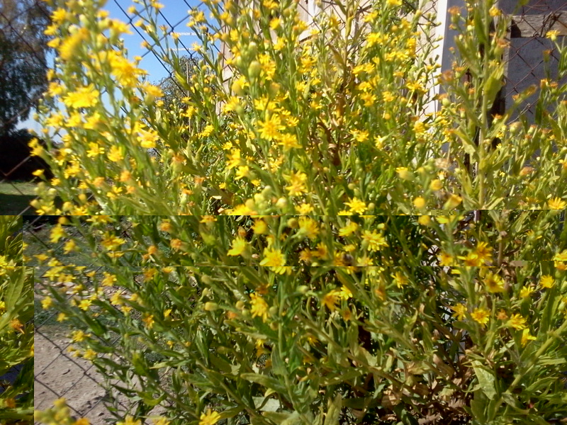 Dovrebbe essere Inula viscosa, fiorisce infatti proprio adesso ma non ti so dire se abbia un interesse apistico o meno. Comunque le fioriture autunnali quest'anno sembrano buone anche dalle mie parti (almeno i fiori di campo) e le mie api stanno mettendo via parecchie scorte per l'inverno e tanto polline. E per ora non è edera quella che mettono via perchè i fiori ancora non sono aperti e poi il profumo del miele di edera è inconfondibile.