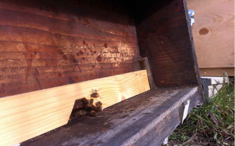 Oggi tutte le famiglie erano attive. L'arnia con la covata nel cassetto un po meno, forse è vero che ce ne son poche: mangiano il candito sul coprifavo con molto interesse. Secondo me, a parte il fatto che regina e operaie non si mettono d'accordo, è il clima che ha degli sbalzi incredibili e di conseguenza le api non sanno come organizzarsi. Non so. Almeno posso escludere che ci sia tanta varroa, nel cassetto non ce n'è.