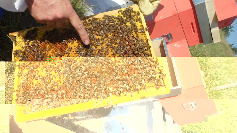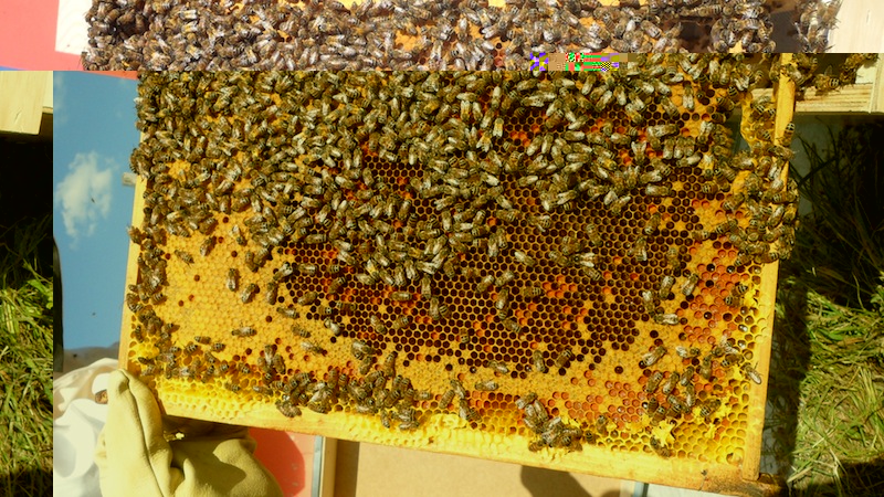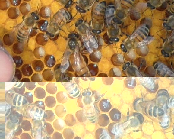 Visita di oggi 09-06-2014 ore 16.30/18.00 abbia mo visitato tutte e quattro le famiglie e abbiamo riscontrato una buona attività in tre famiglie su quattro. Nelle prime tre famiglie abbiamo avuto anche la fortuna di vedere le tre regine. I telaini acquistati erano 6 adesso otto perché due giorni fa ne sono stati aggiunti due. Si vede una buona presenza di api e una buona covata in parte aperta e in parte opercolata. Nei melari si nota appena la presenza di poche decine di api che stanno lavorando a costruire i favi. La famiglia più debole è la quarta si vede poca covata e minore quantità di api. Abbiamo fatto delle foto di alcuni telaini che rappresentativi di tutto l'apiario. Le api si sono dimostrate calme nonostante la presenza di tre persone. Abbiamo fatto anche una foto rappresentativa di quello che abbiamo rilevato sul fondo antivarroa. Ecco alcune immagini della situazione riscontrata oggi pomeriggio alle 17.00.