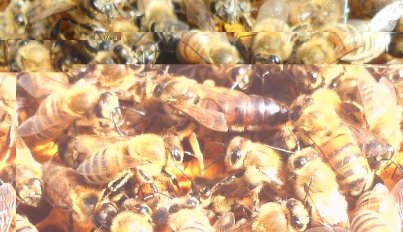 La prima foto dovrebbe essere la regina dell'arnia 1 e le altre della seconda famiglia. A me sembrano tutte uguali...