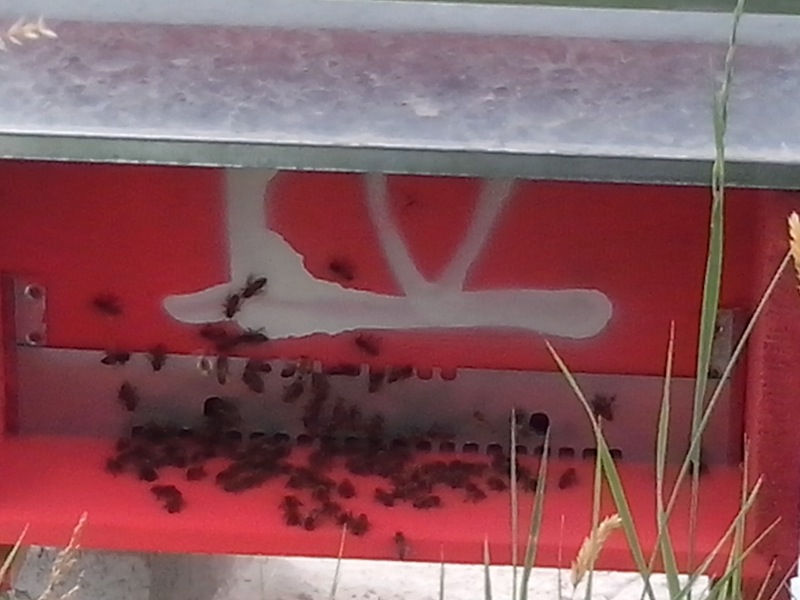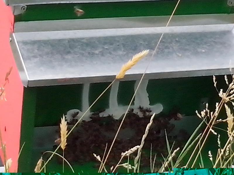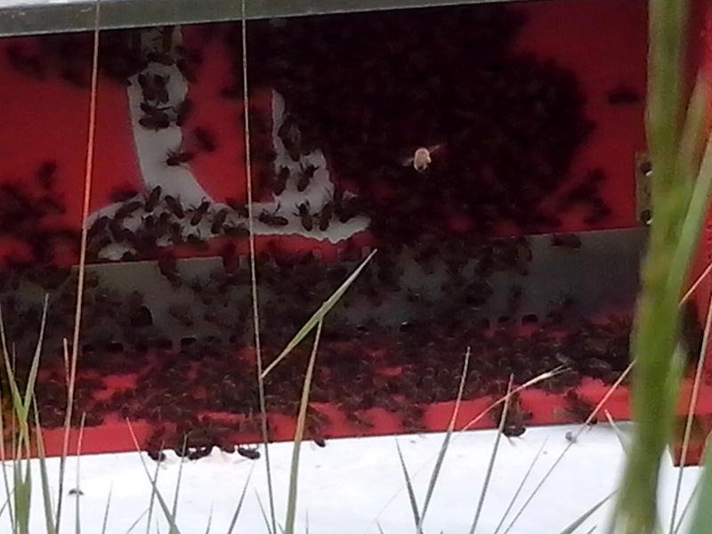 Posto le foto delle api sotto il portichetto delle nostre arnie e attendo vs. consigli in merito.