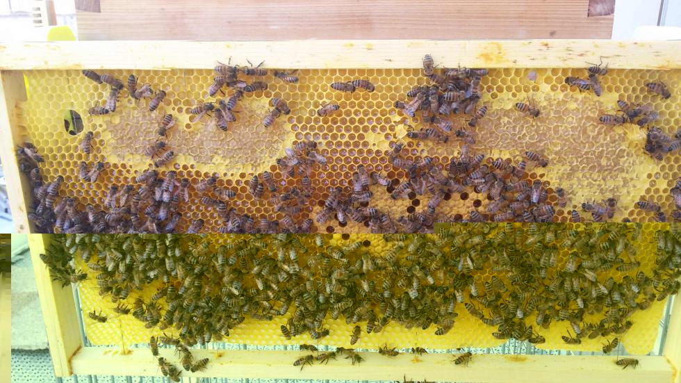 Diciamo che la cosa strana e' che devono ancora finire di costruire l'ultimo telaino di 10 e intasano i telaini dove prima c'era covata.
