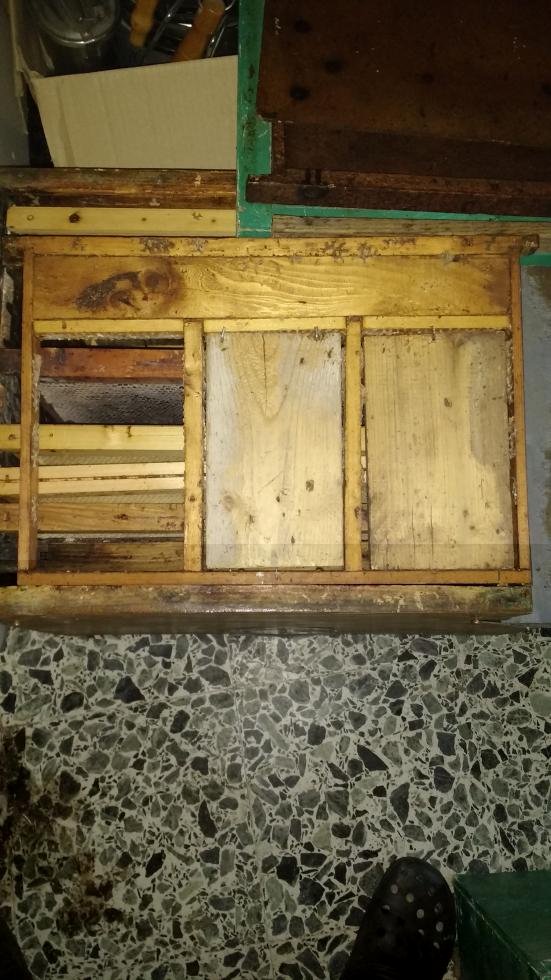 Ho anche una trappola da polline in legno da agganciare all'arnia, credo sia il mod Metalori, lho presa perchè suso il polline e mi piacerebbe averne un po fatto da me da consumare fresco.