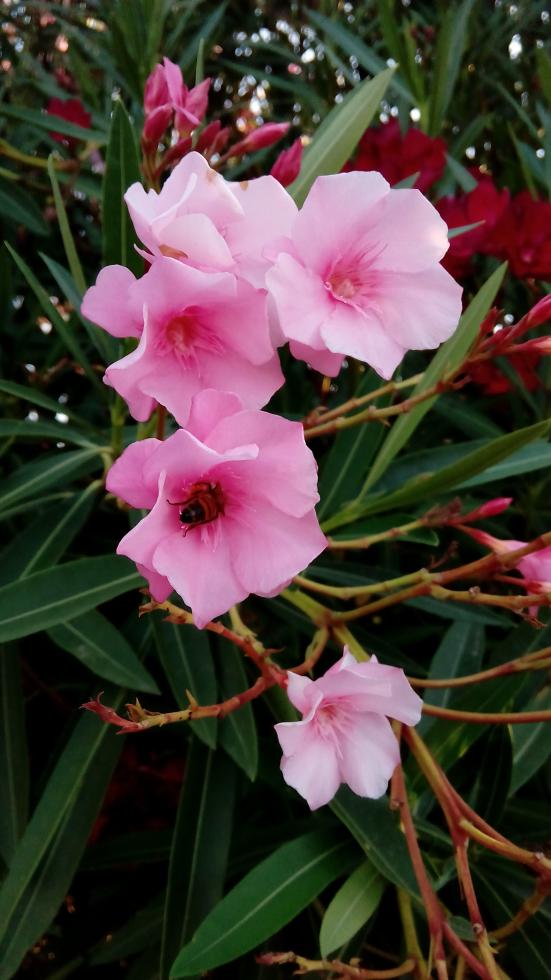 Tsk_tsk probabilmente le tue ma anche no... Personalmente su oleandro non sono ancora riuscito a sorprendere delle api, in foto si ma sulle varietá a fiore semplice, non quelle a fiore composto/doppio. Ho notato invece lo sviluppo di colonie di afidi, di colore giallo, sugli oleandri, e in questo periodo che scarseggia di altre fonti, sicuramente attirano l'attenzione delle bottinatrici. Non saprei dire se il nettare possa essere tossico o se la melata lo sia, di sicuro pare di no per le api.