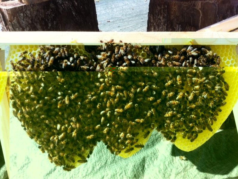 Domenica mattina il tempo era decente e ho visitato le famiglie. Mi sembrano forti e in salute. Ho visto uova e regine, quindi tutto a posto. Ho preso due telai di covata belli pieni della cassa più forte e li ho messi nella cassetta pigliasciami, nella speranza di farci un nuovo nucleo. L'intenzione era di guardarlo oggi, ma non è giornata. Forse domani se il tempo migliora. Il consiglio dato dall'insegnante del corso è quello di aprire dopo 4-5gg è distruggere tutte le celle reali opercolate, perché significa che sono celle "di emergenza" fatte con larve già sviluppate, che, a quanto si dice, generano regine meno efficienti. Nel frattempo ho visto i progressi fatti sul mio telaio nudo. Questo è il risultato, che mi pare ottimo! Tra l'altro fortuna ha voluto che su quel telaio ci fosse la regina, battezzata Elisabetta I. Si fa fatica a vedere, è sulla destra dove si vede uno spazio lasciato vuoto dal suo passaggio. Allegato: