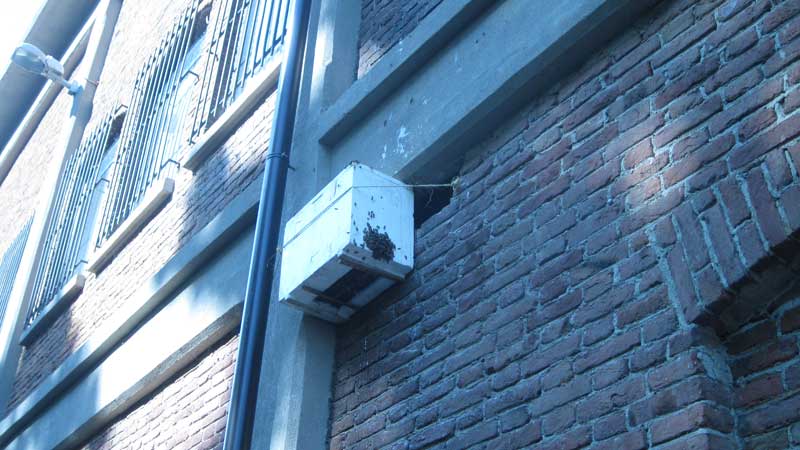 nik28 ha scritto: martedi ritolto altro portasciame e sostituito con 5 telani costruiti ma vuoti senza covata ora vedremo cosa succede (se la regina si trsferisce) fin'ora e stato un successo senza rompere il muro o recuperato 2 bellissimi sciami. agiungo foto a presto le foto del climatizzatore colonizzato...