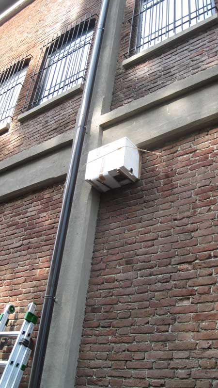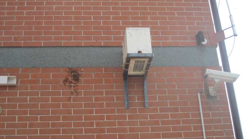 in entrambi i casi ho costretto l'ingresso all'alveare al passaggio obbligato nel mio polistirolo facendo un foro dietro e piazzandolo al muro con staffe ecc..