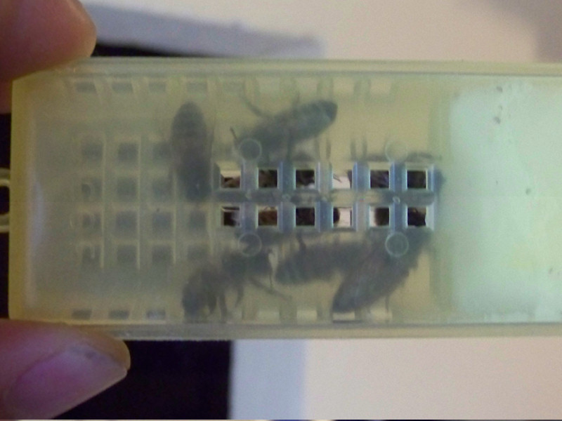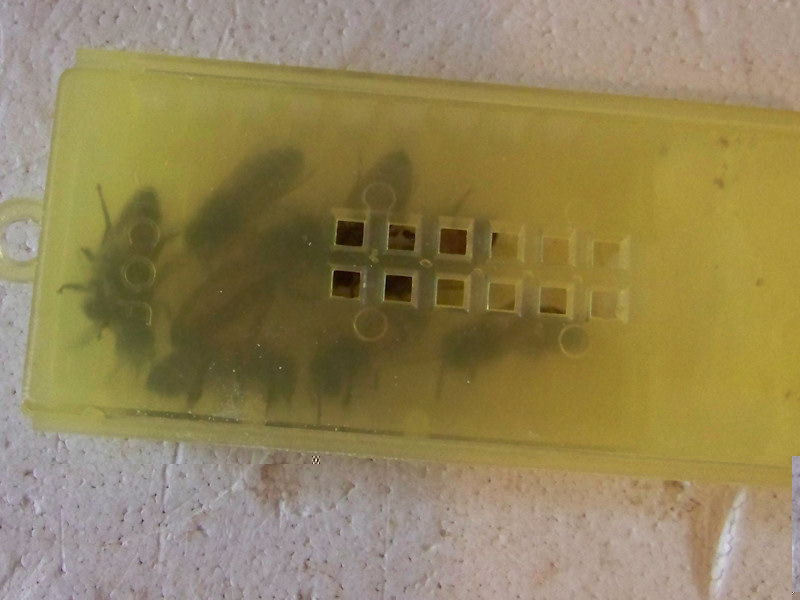 Oggi nel recuperare il solito sciame malefico (sciamato una delle mie arnie con regina penso del 2011), non ho ucciso la regina bensì, come al mio solito, l'ho ingabbiata con 6-7 api.