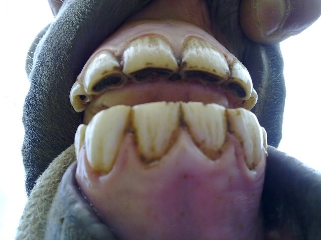 Ciao a tutti! Sto cercando di stabilire l'età dei miei due giovani asini (per capire se la femmina posso lasciarla montare dal maschio). Purtroppo il vetrinario mi ha messo la pulce nell'orecchio e penso che l'età dichiaratami dal venditore l'anno scorso non è esatta. So che l'età di solito si può definire a grandi linee esaminando la dentatura. Come funziona? Quasi quasi vi posto le foto dell'animale in generale e della bocca in particolare e poi mi date un'opinione.