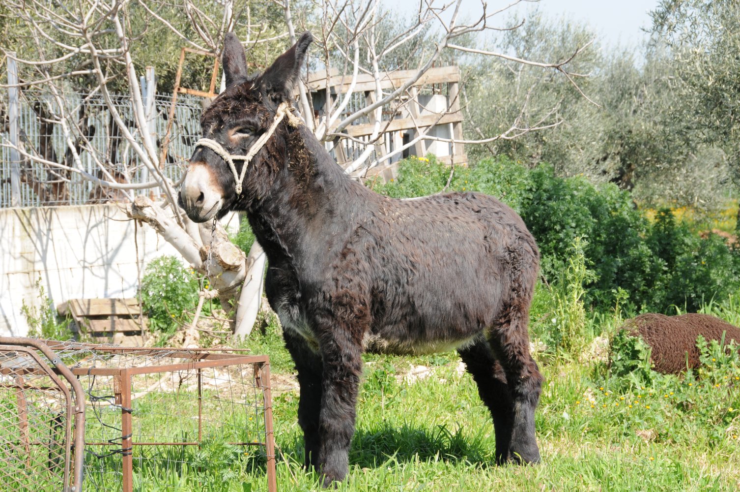 per quanto riguarda i muli lui si interessa alle cavalle ma fin ora non sono riuscito a far coprire nessuna cavalla non per colpa di turbo ma perchè si ribellano lui è molto irruento e ha i tempi normali degli asini e le cavalle si mostrano irrequiete, se ci dedicassi un po più di tempo sicuramente ne ricaverei dei bei muli purtroppo i tanti impegni mi hanno costretto quest'anno addirittura a praticare la monta in libertà, cioè gli ho messo la museruola per evitare che facesse del male alle asine e lo lascio di giorno libero nel recinto delle asine da fecondare.