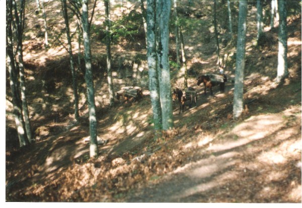 di solito lavoriamo nelle vicinanze di Badia Prataglia, quest'anno forse ci sposteremo verso camaldoli, ma ancora è tutto da decidere. Sono solo 4 animali, un mulo e 3 cavalle.