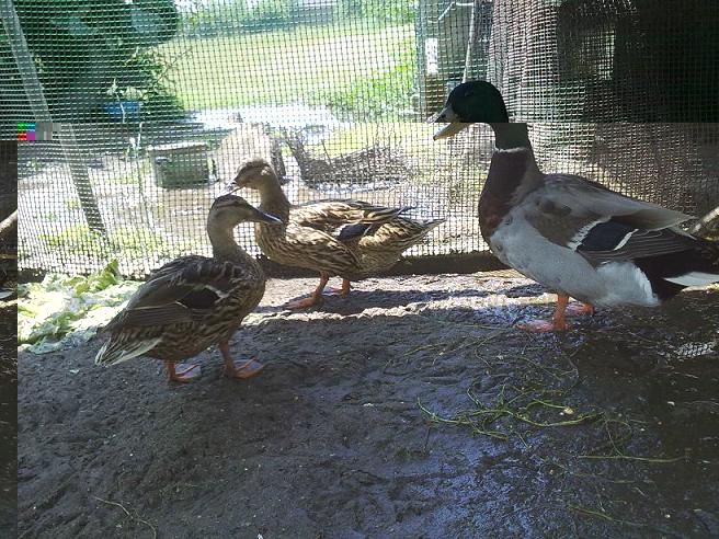 Per essere di razza doveva essere leggermente più grande delle femine mentre dalla foto sembra che sia quasi il doppio e poi in un allevamento non c'è solo una coppia di riproduttori ma decine, se non centinaia che depongono tutte insieme e vengono incubati alti numeri di uova quindi può darsi (per non dire di sicuro) che i genitori delle tre anatre siano differenti.