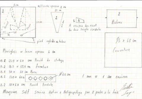 Il sistema consiste in una tramoggia con le granaglie, una plancia su cui le galline salendoci fanno ruotare aprendo lo sportello del cibo. Quando la gallina se ne va il tutto si chiude.
