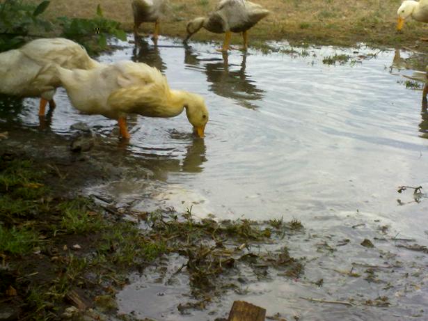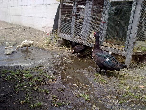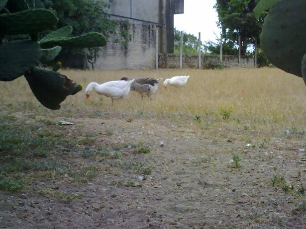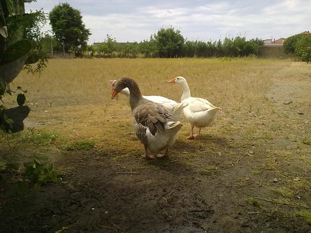 Oche 1 femmina e 1 maschio di romagnole e 1 maschio di tolosa,sempre al pascolo.